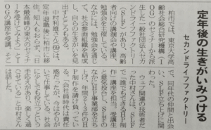 2025年1月3日 / 最終更新日時 : 2025年5月15日 kashiwa613 未分類 柏市民新聞に私の記事が!! 2019年9月24日(火)、柏絵駅前の喫茶店うららで柏市民新聞社の記者のインタビューを受けました。 その記事が柏市民新聞10月11日号に載りました。しかし、残念なことに私の名前に誤りがありました。 内容は大体あっていますが、細かい部分では私の言った事と違いがありました。